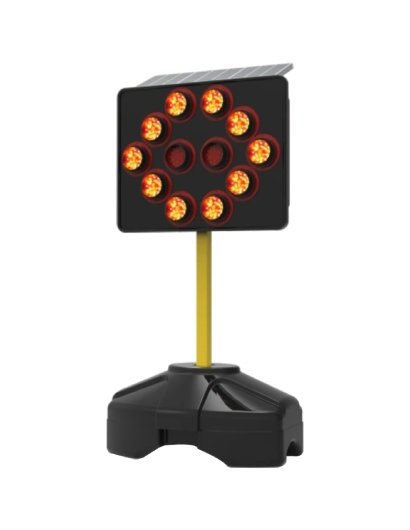 Proyecta la animación de flechas en movimiento que guían el sentido del tránsito, mejorando la atención del conductor. Utilizado frecuentemente en autopistas, túneles o cruces en construcción.